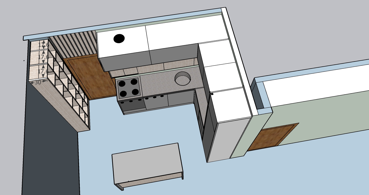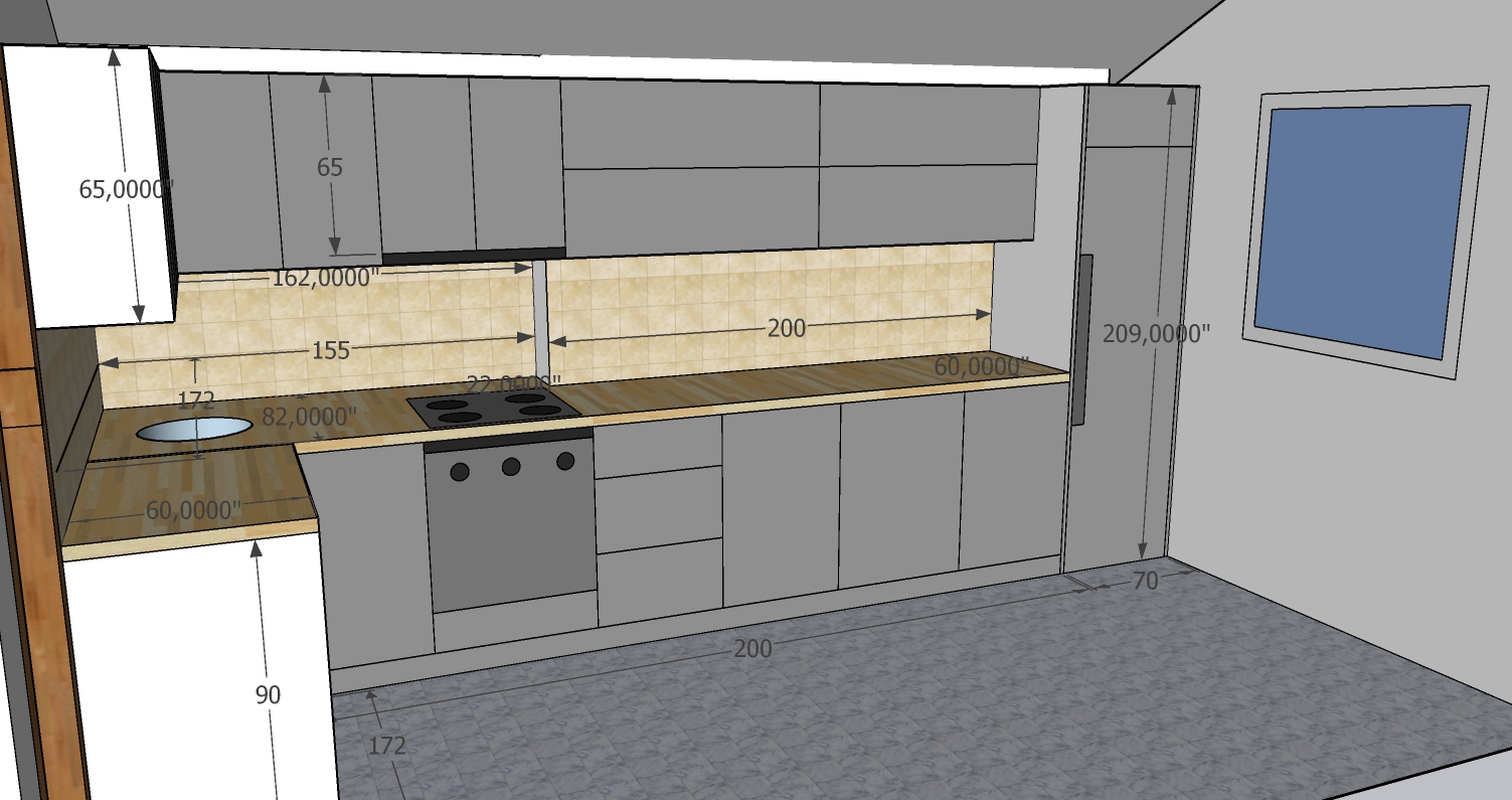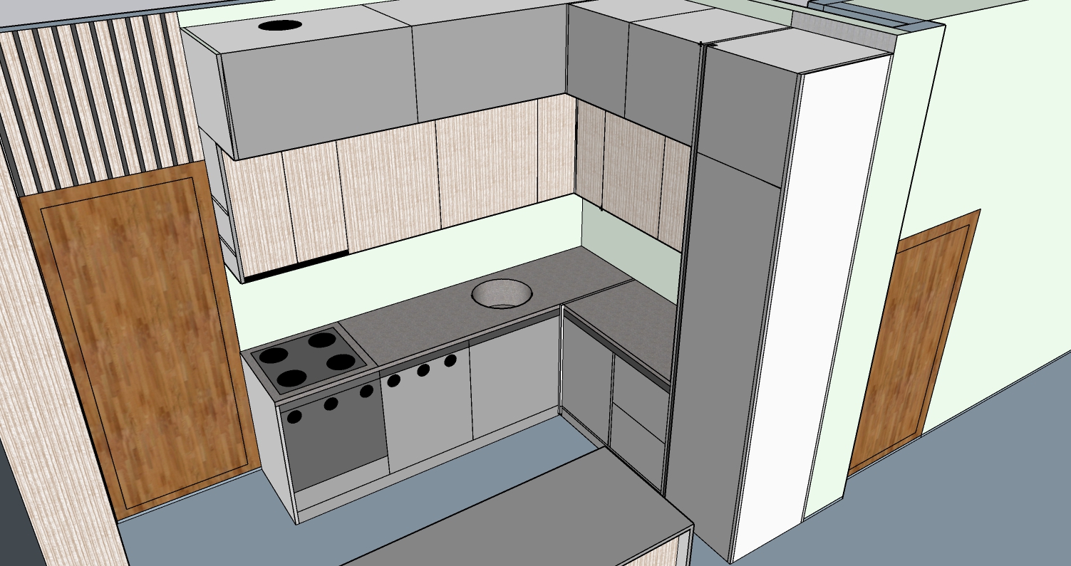 The project includes one unit measuring 200 × 250 × 270 cm, one counter measuring 130 × 60 cm, and one beverage cabinet measuring 120 × 270 cm. The interior structure is made of chipboard, with MDF doors, and some doors made of chipboard with veneer finish. All mechanisms, including hinges and drawer systems, are complete GTV fittings. The kitchen worktop is not included in this price.